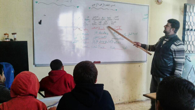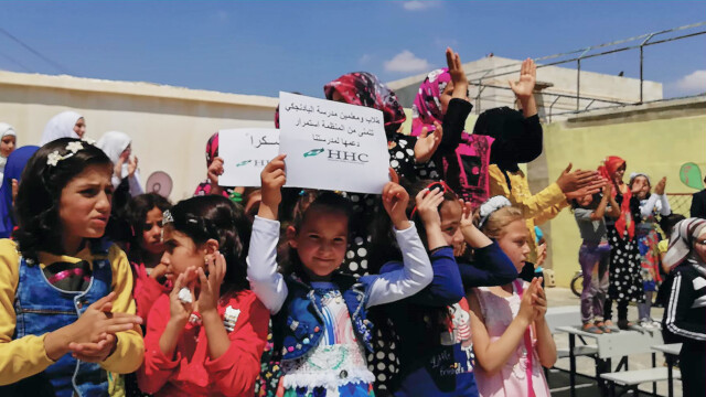 Dank der Spende einer deutschen Stiftung konnte Human Help Community den Schulbetrieb in einer leer stehenden Schule nahe Aleppo für das Schuljahr 2017/18 organisieren. Die Stiftung übernahm für dieses Schuljahr die Betriebskosten inklusive der Lehrer-Gehälter. Die Helfer vor Ort haben das Gebäude mit wenigen Mitteln für den Unterricht hergerichtet und fast alle Wände gestrichen.